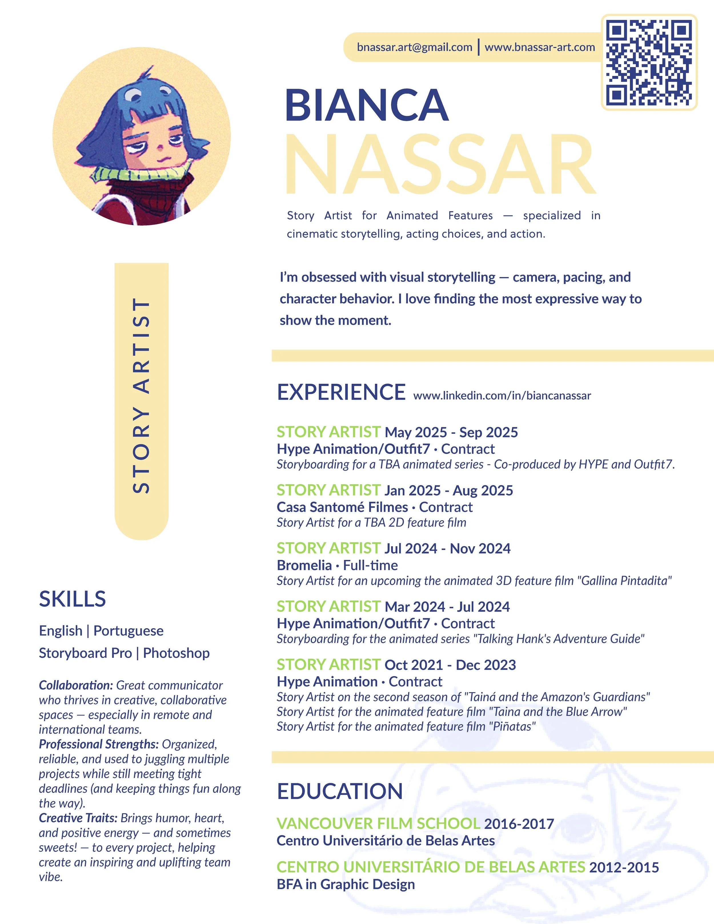 Hi I'm Bianca! I'm a Story Artist and Character Designer from Brazil.